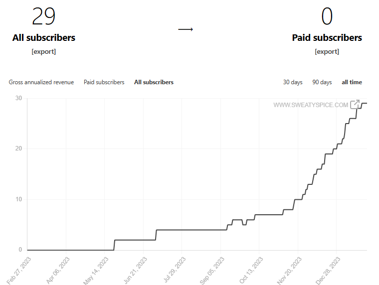 Clearly, something started in October/November time frame. I started tossing in nuggets of observations on politics. I also started clicking on the “Also share to Notes” when I commented on places I was reading and also made it a note, I started getting more traffic, but then some of these people were pressing the button to subscribe.