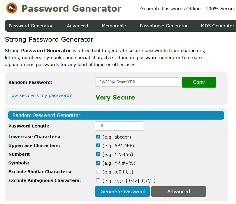 And I do use this to create passwords that I will never have to type in. For example, the database that this site runs on is MySQL, and it has a "root" user [1], that needs a strong password, so that if someone does get past my firewall, they can't actually do anything with my database. I create a password, copy it into the configuration, and I am done with it forever. (I do have a text file where I save that too) But I don't ever as a user log in.
