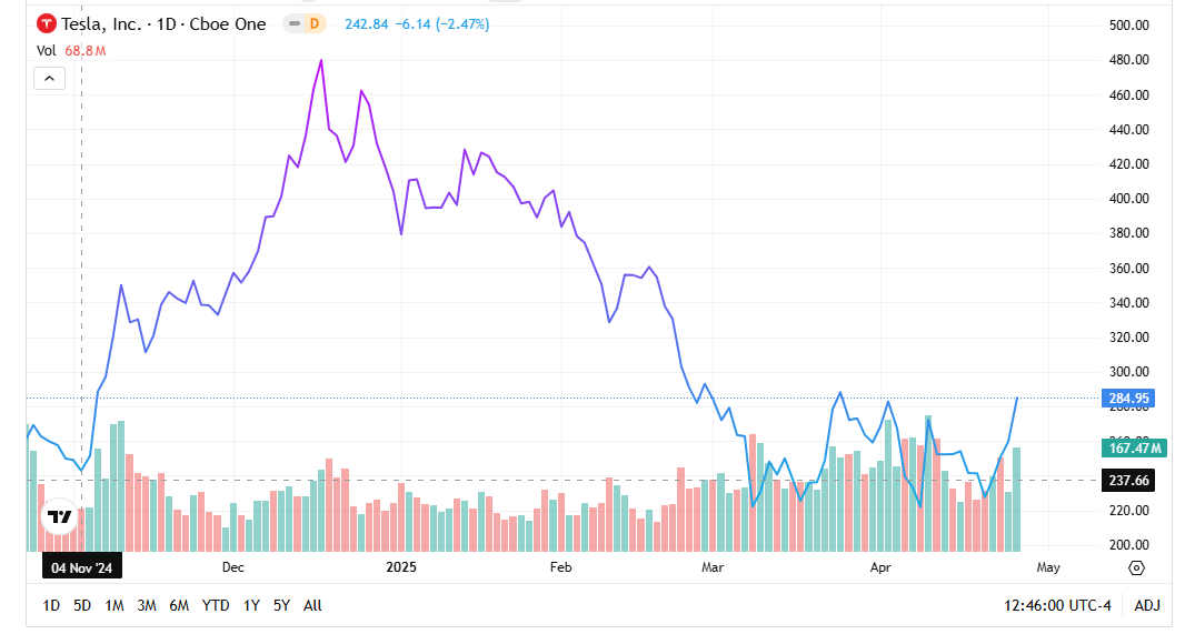 (here is the link to the chart: Tesla (TSLA) Stock Chart and Price History 2025)