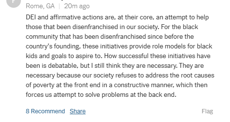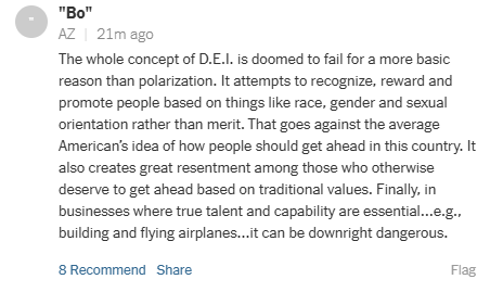 Look, in my professional life, I make a point to seek out people who do not look like me. Women and people of color with different backgrounds make the team stronger, and the diversity of opinions and perspectives greatly improve the team dynamics. Sure, this is empirical, but in my case it is true. Hell, I have even posted about this on my professional blog: The DEI Boogey Man and then the follow up — which I think David French falls — Those Who Get Upset Over DEI Programs.