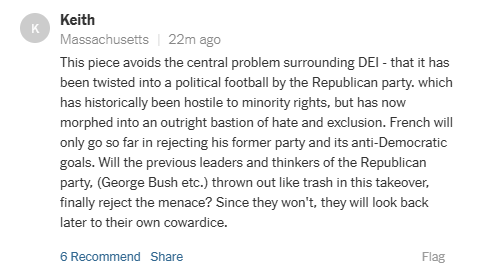 Or, David French uses a horrible implementation of DEI to justify his disdain. News at eleven.