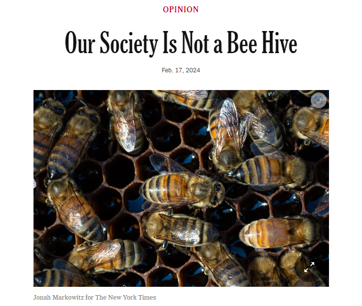 Jamelle Bouie is usually worth reading, and actually, this OpEd is worth reading, but for the life of me I question the wisdom of comparing the US political environment to the rigorous order of a bee-hive. I get the reference from the article he was describing, but still…