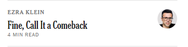 I was never an Ezra Klein fan, he was always a bit to smarmy and progressive, but when he joined the Times, I noticed that he became a bit more high-brow, but his takes still suck.