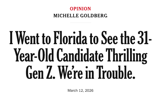 I am going to admit that I do like reading Michelle Goldberg on the Times opinion area. She's pretty fair (but she leans left), and someone who I read a lot because of her perspective on Israel and antisemitism.