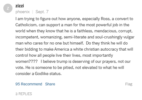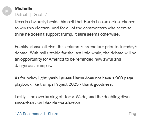 No, Ross is so anti Kamala because she is taking his favorite subject where he gets to flex his misogynist muscle, inculcated in him by his rad-trad Catholic faith.