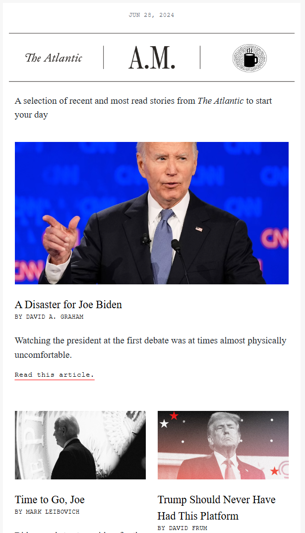 Last night was a fucking disaster—for Biden, for CNN, for truth, justice, and the American way. That wasn’t a debate; it was elder abuse. And Jake Tapper and Dana Bash just sat there and watched it, like two math nerds ignoring the high school bully. I understand that CNN’s rules prevented fact-checking—they may as well have prevented journalism—but those two frauds just participated in an assault on democracy. Tapper, especially, knows better, and if he doesn’t resign after that debacle, I don’t see how we can take him seriously as a journalist ever again.