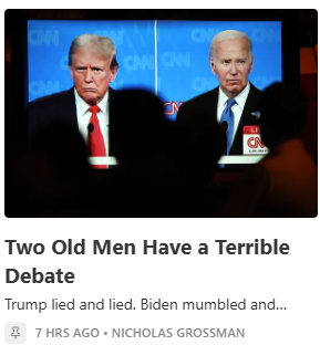 It doesn’t matter that Trump uttered not a single true word. The contrast was enough, and all the sudden stirrings of a “gee Joe, you need to step aside” are going to further drive that “undecided” cohort to go to Trump even harder.