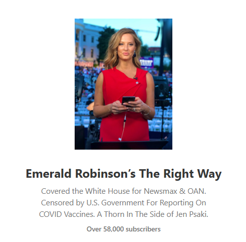 And her top story is about how Substack has gone “woke”. Her reasoning? Because as the prior post clipped from Emerald, they got relegated to “health politics”, and that this is some marxist ploy to bury the truth. The richest thing?