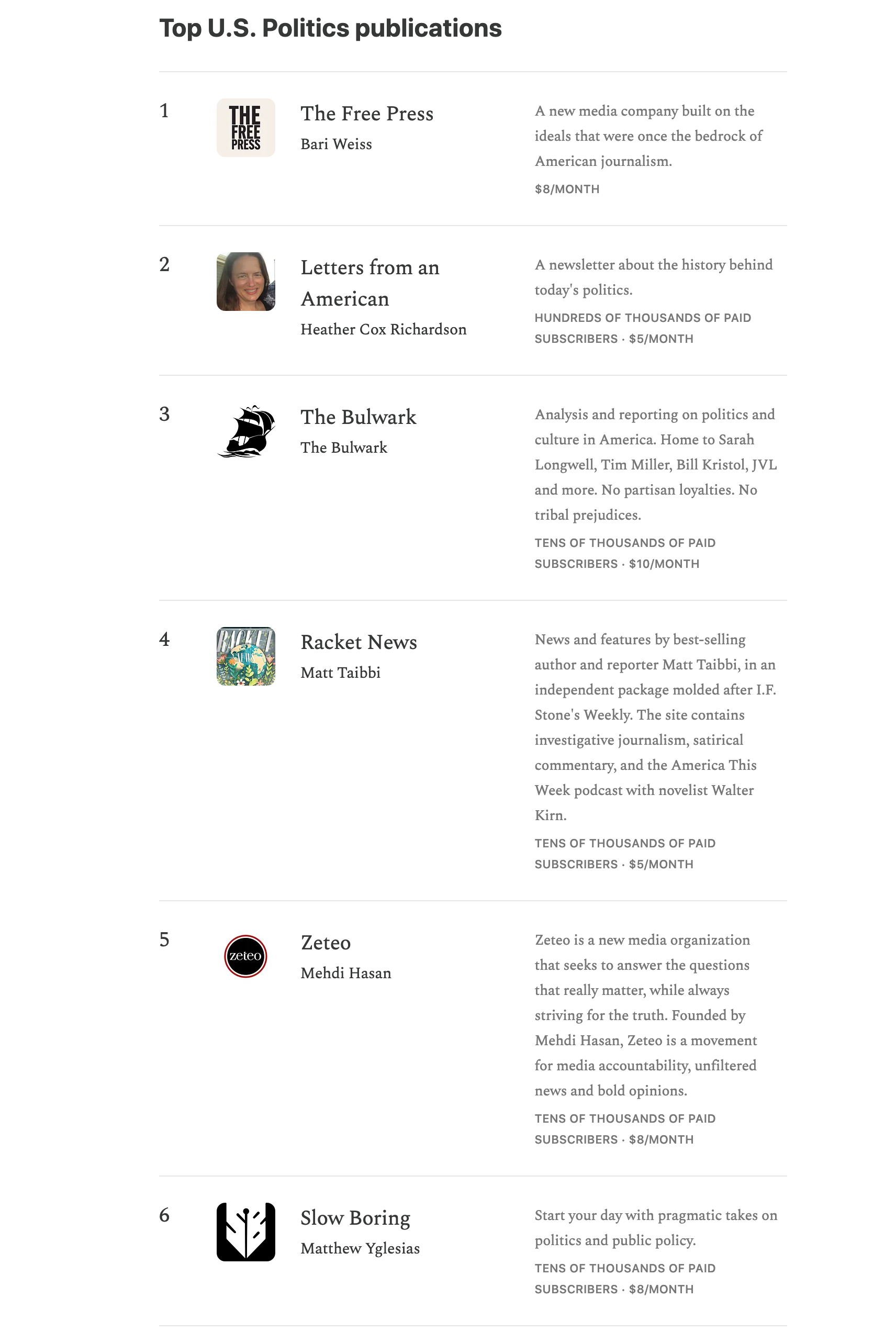 Who are they kidding? The entire category now appears to be manipulated. Heavily manipulated. It’s a list of whores for the Biden regime (with the exception of Matt Taibbi) all the way down. The problem should be obvious: Joe Biden is the least popular tyrant to ever illegally occupy the White House according to public polling data. So how’s it possible that his third-rate chorus of shills are so popular that they dominate Substack?