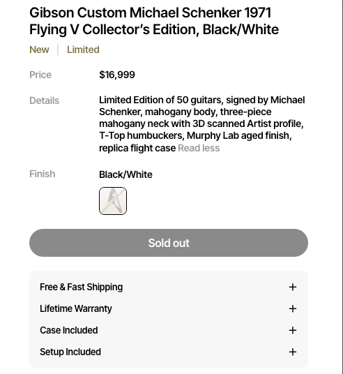 They finally did it, a limited edition custom Michael Schenker Flying V. I missed my chance to own one, but I am not too sad about that.