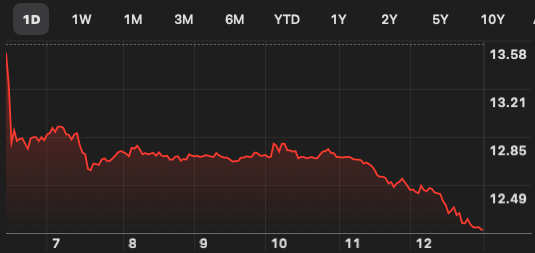 At the end of the day, the low of the stock touched $12.12 before recovering slightly to $12.15 in the closing price.