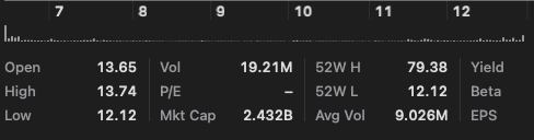 Considering that it started Monday at $13.65, that is a whopping 11.2% fall. Not great for the second trading day post lockup expirations.