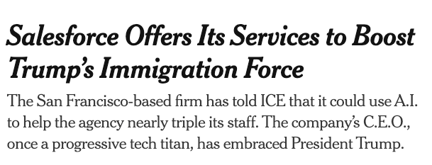 Fuck ICE, fuck Marc Benihoff, and fuck Salesforce! Read the article (click on the headline image above to get a gifted link)