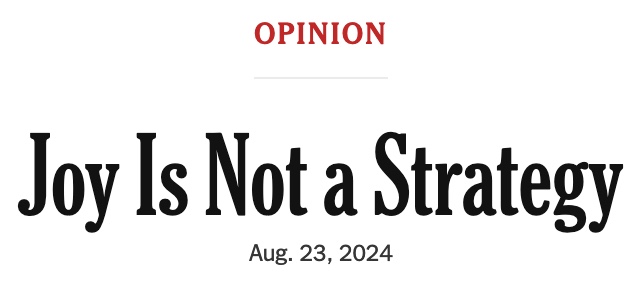 Their latest screeds are all about their inability to corner Kamala Harris and/or Tim Walz for a “long form” chin-wag, aka interview. They rail about the “lightness” of the policy positions of the Harris campaign, about how they don’t know what she stands for, and that it isn’t fair. From this morning’s post by Jeff Tiedrich1, he drops this truth: