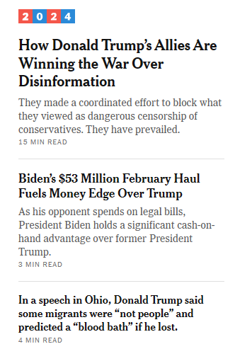 Above the fold, in their “Election 2024” section, is this trio of stories: