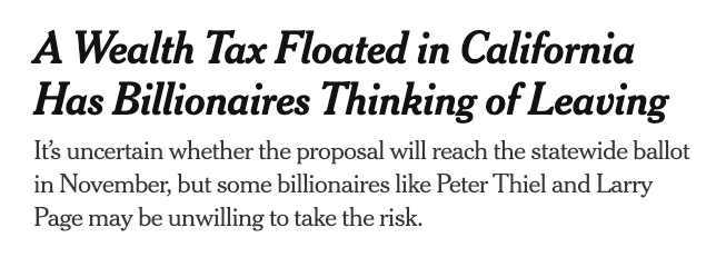 Oh, what, this isn't already a law, but it is gathering signatures to be put on the ballot for November, and these fucking cowards are planning to leave the state before January 1 to avoid the retroactive tax?