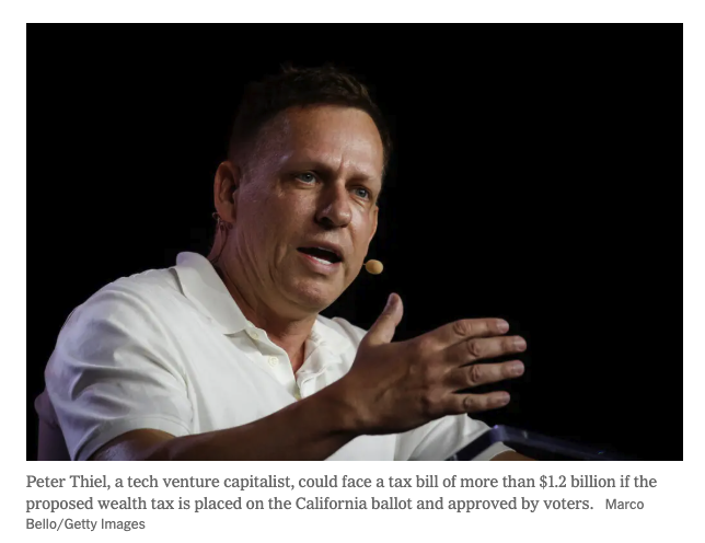 Whether the proposal will reach California’s ballot is far from certain, but some billionaires may be unwilling to take the risk. For Mr. Page, whose net worth is estimated at $258 billion, the measure could result in a one-time tax of more than $12 billion. The tax bill for Mr. Thiel, whose net worth is around $27.5 billion, could be more than $1.2 billion.