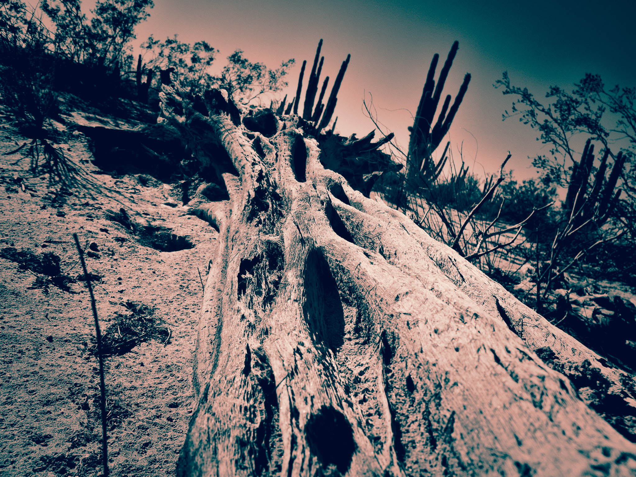 Of course, there are tons of cacti there, and if you know about the skeletal structure of the mighty Saguaro cacti, the frame is a woody frame that is covered in the flesh. When they do die, and the “flesh” rots off, you are left with an intricate wood structure that is striking: