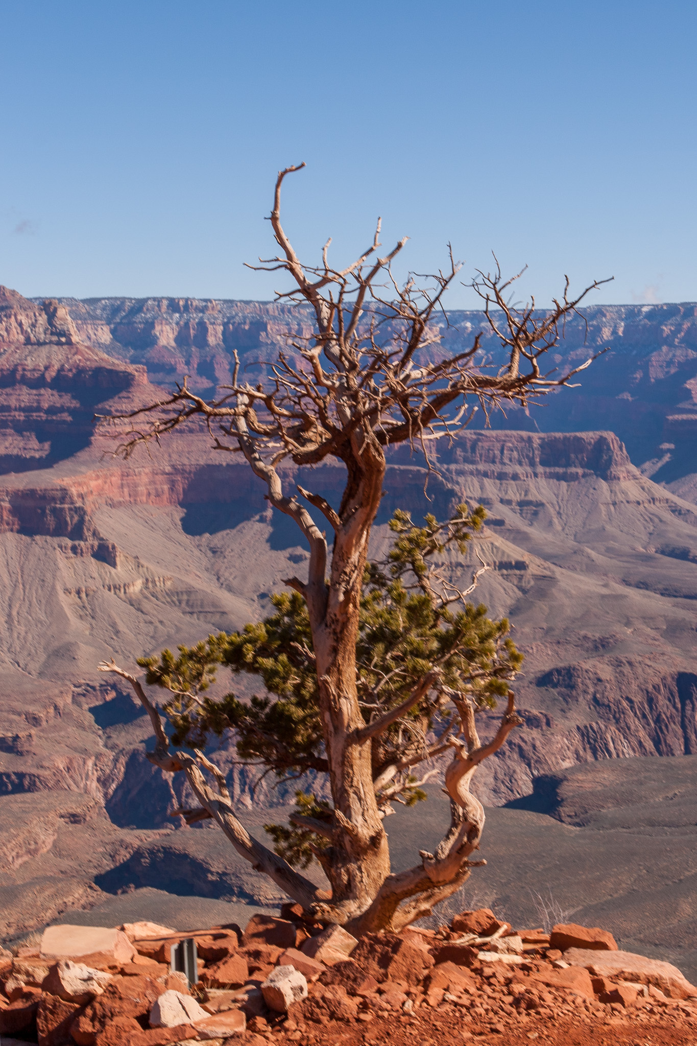 I will do a full post on the GC, but there were two trees that grabbed my attention. This first one was about a turning point on the South Kaibab trail, and I lifted my Canon 5D and grabbed this. Actually, I took three shots, and combined them in an HDR merge (using three exposures to make it “pop”):