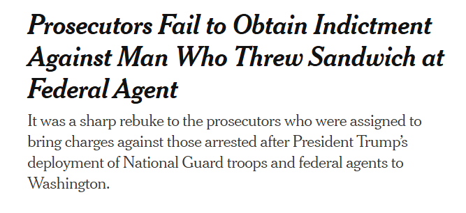 Well, it turns out that a grand jury failed to indict for felonious sandwich tossing: