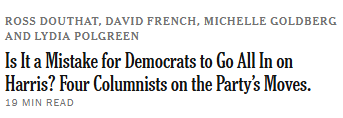 However, as the Democrats quickly coalesced around Harris, and the dreams of the editors and pundits evaporated, all these posts by the “Editorial Boards” disappeared.