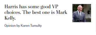 Then there is the WaPo’s political columnist Karen Tumulty’s shit take on the VP choice: