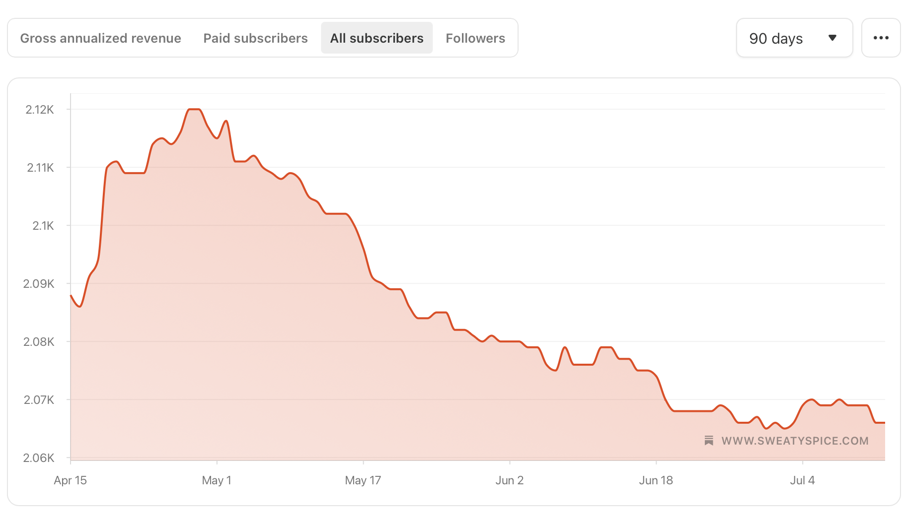 This decline is new, and it almost seems like once you get to about two thousand subscribers and you don’t have paid subscriptions turned on, Substack begins to throttle your reach.