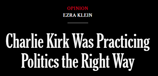 You can dislike much of what Kirk believed and the following statement is still true: Kirk was practicing politics in exactly the right way. He was showing up to campuses and talking with anyone who would talk to him. He was one of the era’s most effective practitioners of persuasion. When the left thought its hold on the hearts and minds of college students was nearly absolute, Kirk showed up again and again to break it. Slowly, then all at once, he did. College-age voters shifted sharply right in the 2024 election. (emphasis mine)