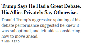 Yep, and also ironic is that Fox News is having an internal civil war where the ‘news’ side is being blunt about how bad the debate was for Trump, but the opinion side continues to fluff Trump. That’s gotta hurt, and I am gonna run out of popcorn.