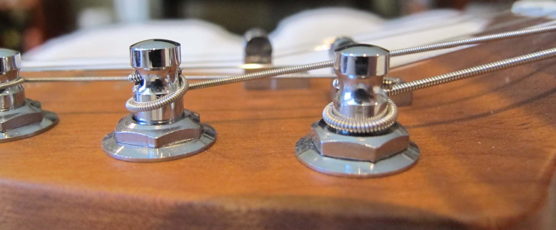 Locking tuners use a mechanism to hold the string to the tuning post, instead of relying on multiple turns and friction to keep the string wound. This leads to easier string changes, and vastly superior tuning stability. ↩