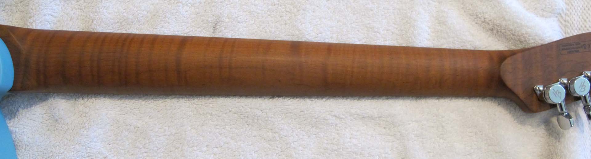 The neck is roasted maple, and it is nicely figured (I need to try to get a good picture of it) so it looks quite purdy. There is a lot of questioning about the “Modern C” shape, as it seems that every manufacturer uses that terminology, and they are not consistent. That said, it is not the wicked fast thin neck of my Charvel, but it does feel pretty nice. My memory is that it feels better than the neck on the $1,800 Fender American Professional II guitar that I was eyeing last year. On a guitar that is < 1/5th the price! Still shape, and feel are very subjective, and frankly, as I have played it over the last 3 weeks, it has greatly grown on me. Yes, I prefer the Charvel neck, and I am glad to have that on my wall, yet the H-B is quite good.