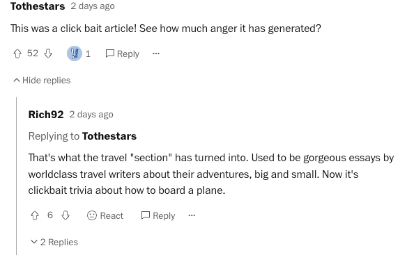 The WaPo is trash, and the writing for the Travel section is really abysmal. I have about 3 weeks left until my subscription is fully expired. Good riddance. This article is typical of the clickbait trash.
