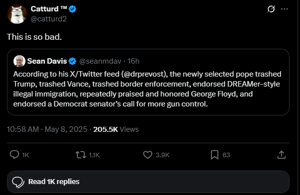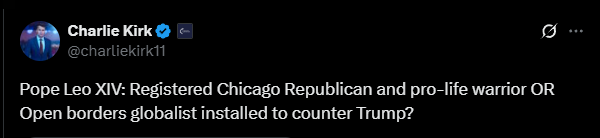 I guess that is one way to defuse the fact that the Conclave selected a woke American to be the new Pope. Suck it JDV!