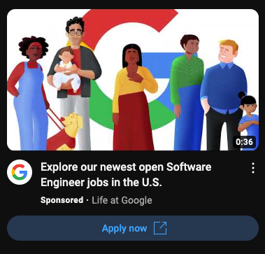 Are their recruiters that fucking lazy to place ads on fucking YT? Seriously, that is just like cannibalization.
